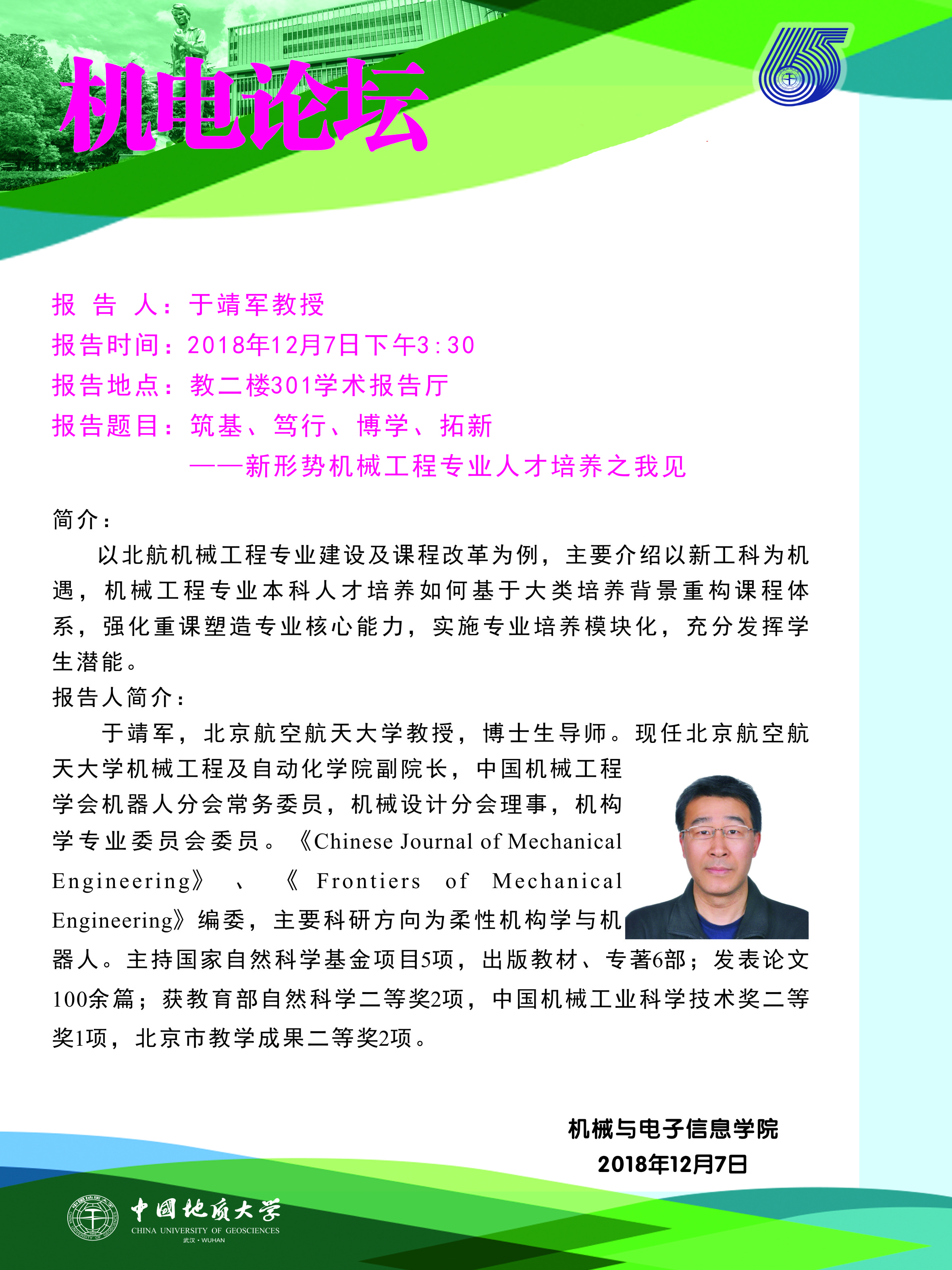 机电论坛:北航于靖军教授来水果派 作报告