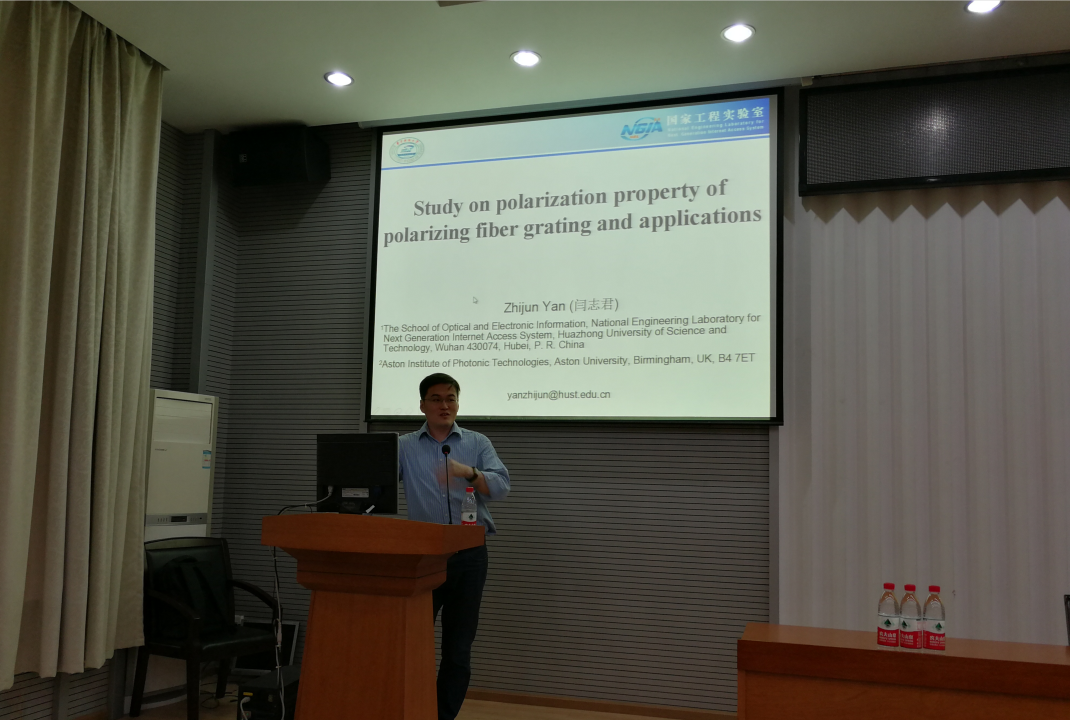 院长丁华锋教授及科发院邀请,华中科技大学光学与电子信息学院闫志君博士于10月9号来我院作题为“倾斜光纤光栅偏振特性及其应用”学术报告。
