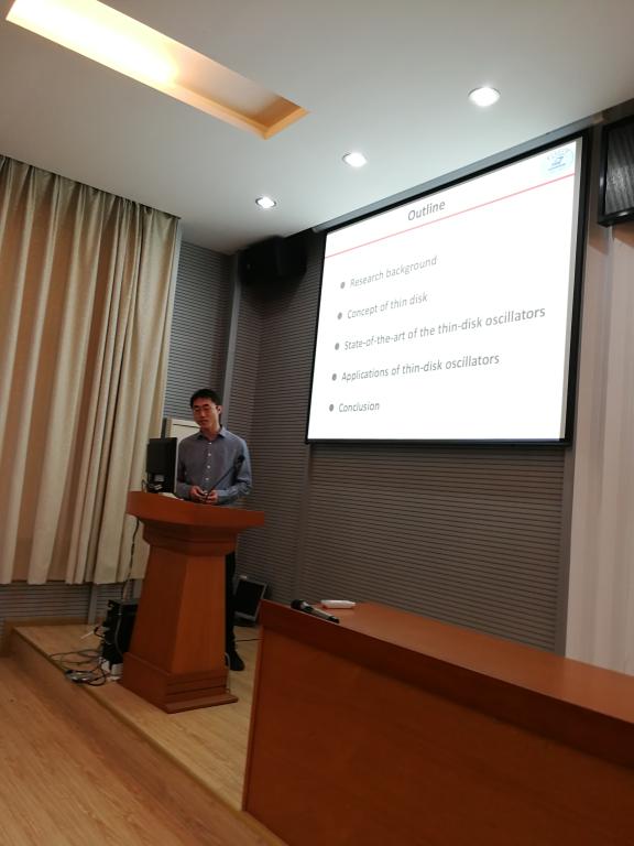 作题为“超快碟片激光振荡器的发展及应用”的学术报告。
