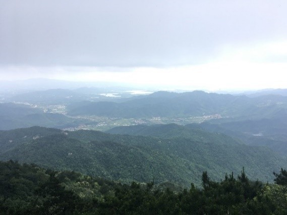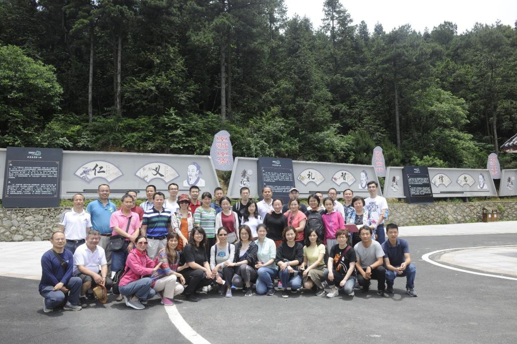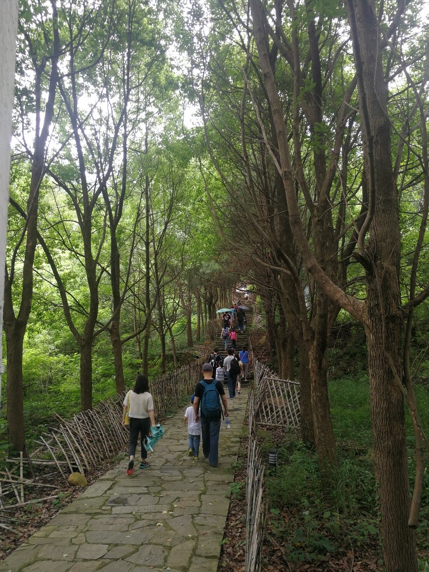 经过2个半小时车程,顺利到达双峰山森林公园。沿着蜿蜒的山路,六辆电瓶车承载着谈笑风生的可爱的老师们,抵达主峰脚下,老师们们兴致勃勃向主峰攀登。欢声笑语沿着山梁行进,愉快的气氛飘荡在幽静的山林。骄阳躲进云层,花鸟相伴左右。沿途风景秀美,不时跳出林立陡峭的怪石,忽现层叠葱郁的林木,身旁花香鸟语,碧水涌翠,美不胜收。不知不觉间,登上了主峰的回宫阁,凭栏远眺,“仙源”美景目不暇接,无限风光尽收眼底,真恰似“河流如束带,田舍若棋盘”。