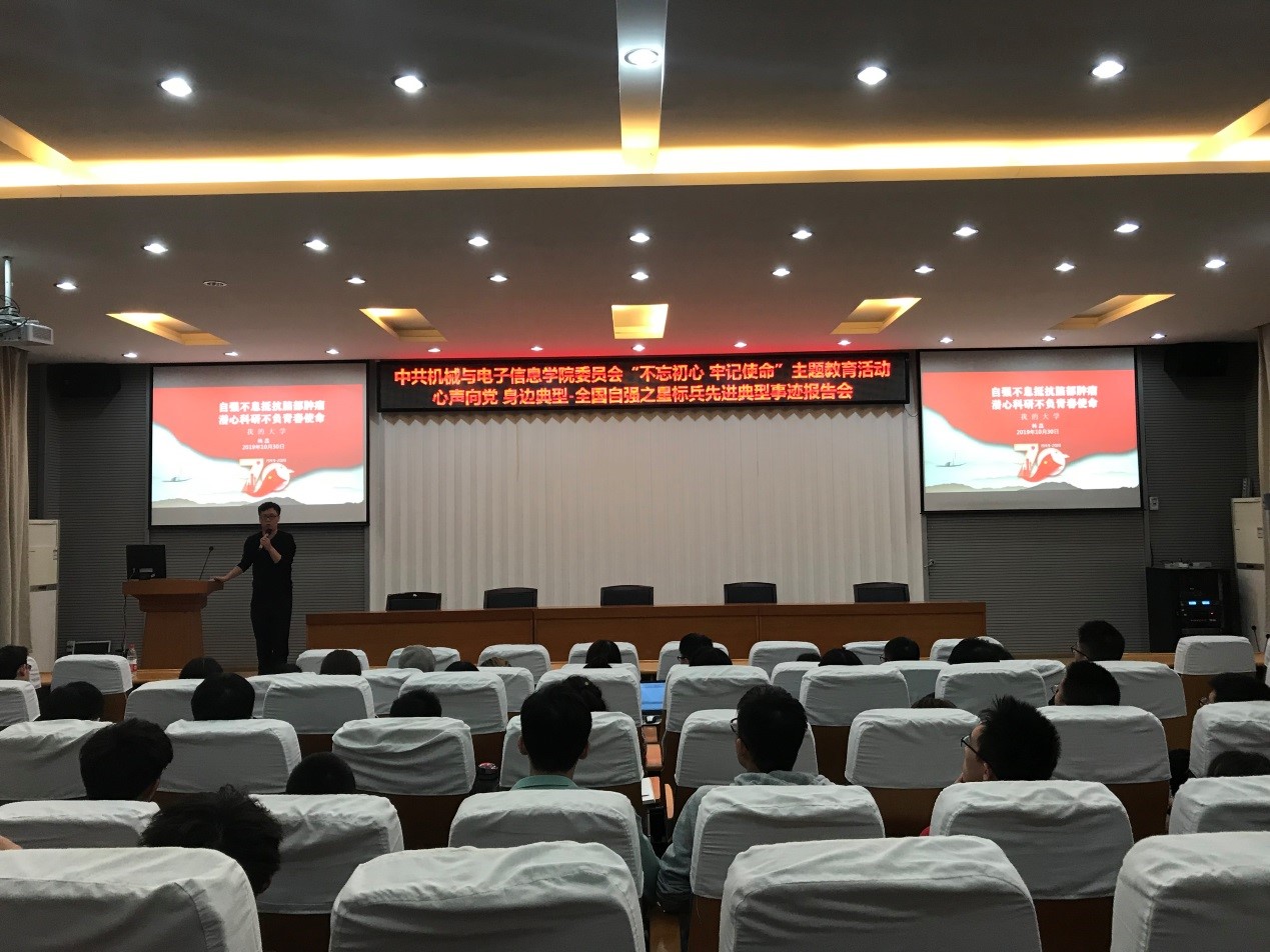 委员会“不忘初心,牢记使命”主题教育活动在教二楼301举行,本次活动主题为心声向党•身边典型-全国自强之星标兵先进典型事迹报告会。2018年全国自强之星标兵、水果派