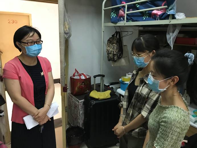 第一批返校毕业生顺利“回家”。当天下午,学院党委书记瞿祥华,党委副书记于晓舟,副院长李波、副院长文国军、副院长罗杰和毕业研究生导师、毕业本科年级班主任、全体辅导员分组走访返校毕业生宿舍,了解同学们的思想动态,为各位毕业生送去学院的关心和祝福。