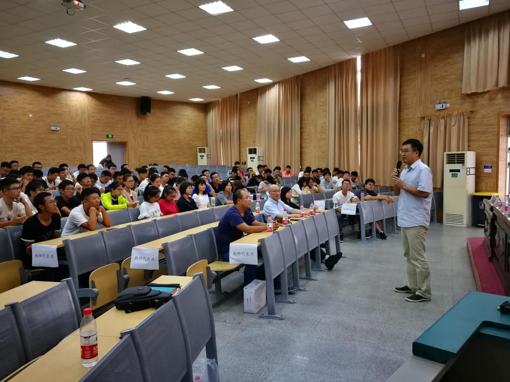 2018级新同学的到来表示热烈欢迎,并对初入大学的同学们提了三点要求:明确目标、制定计划;注重能力、勇于实践;重视品德修养。他希望同学们都能成为“品德高尚、基础扎实、专业精深、知行合一”的优秀地大学子。