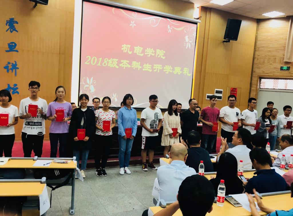 党委书记瞿祥华,院长丁华锋,副院长李波、罗杰、文国军、黄田野,电子信息工程系主任陈分雄,机械设计制造及其自动化系主任宋潮龙,工业设计系主任陈晓鹂,通信工程系主任李杏梅及各专业教师代表,2018级全体新生参加本次活动。典礼由党委副书记齐世学主持。
