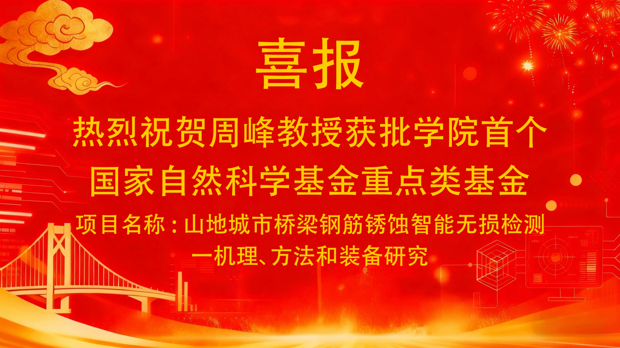 周峰老师申报的“山地城市桥梁钢筋锈蚀智能无损检测--机理、方法和装备研究”项目成功获批立项,获批直接经费达255万元。这一成果不仅实现了水果派
