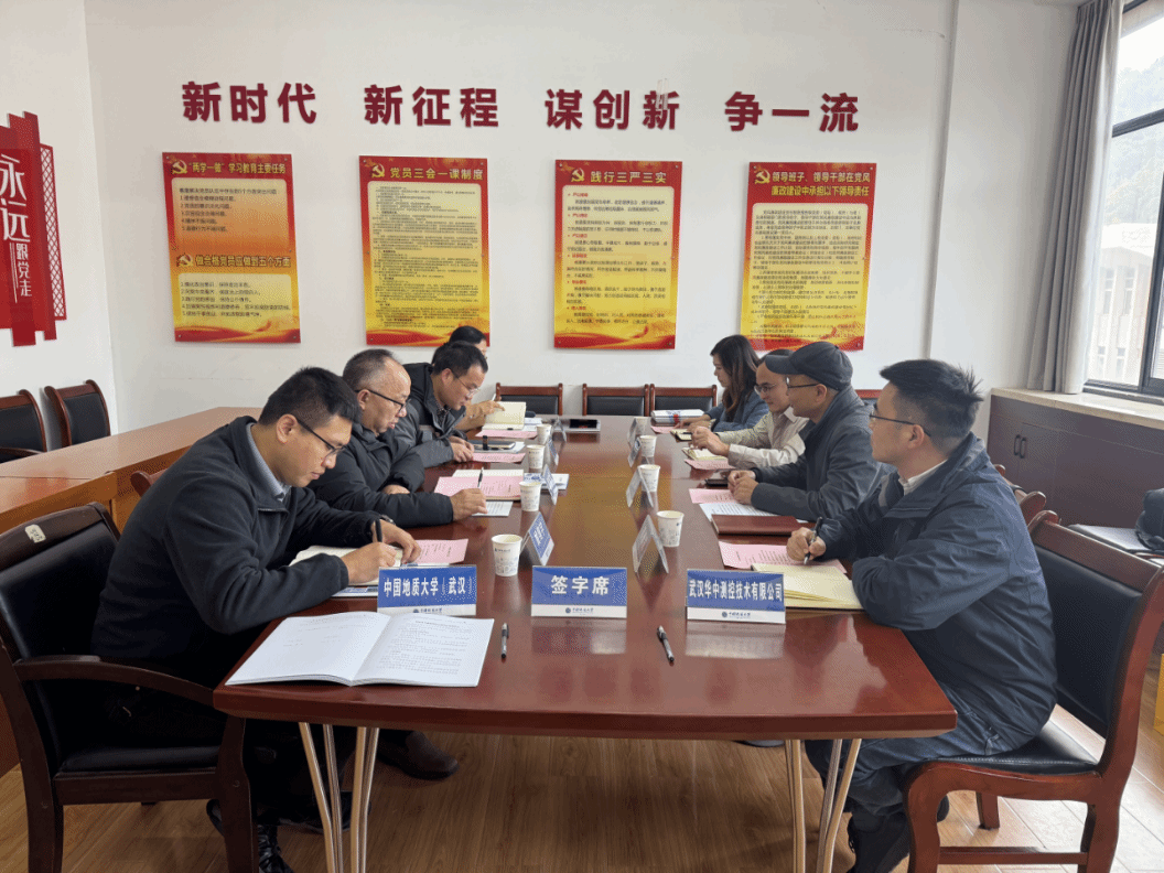 在双方代表的共同见证下,瞿祥华书记与刘冲副总经理正式签署战略合作协议,路桂英与刘冲副总经理签署技术开发合同,此举标志着地大水果派 与华中测控的合作迈入实质性阶段。