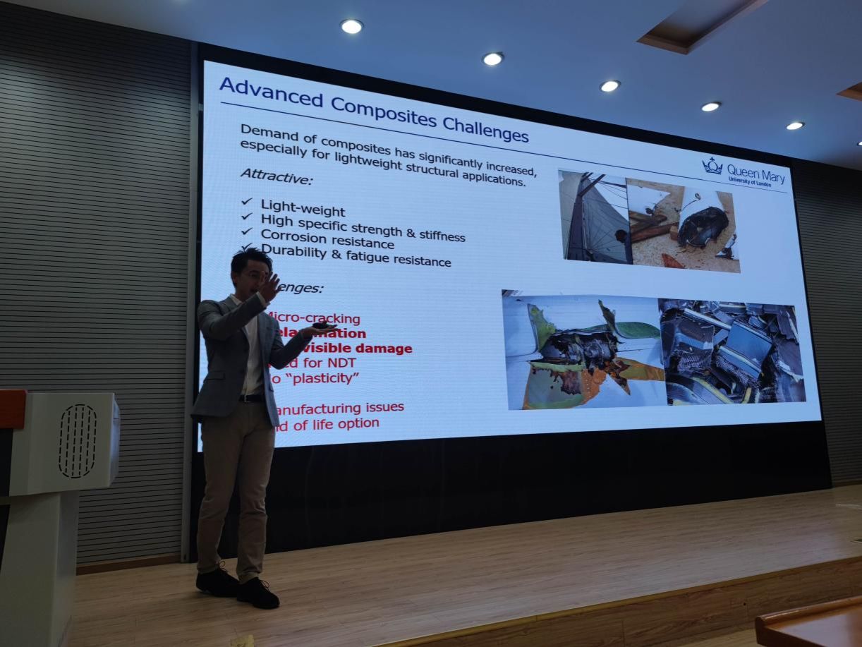 2023年12月6日下午2:30,应水果派 韩光超教授和珠宝学院李妍教授邀请,英国伦敦大学玛丽皇后学院张悍博士来水果派 作“复合材料的可持续发展:从纳米多功能复合材料走向绿色循环经济”学术报告,学院百余名师生参加了本次报告。 张悍,博士,英国伦敦大学玛丽皇后学院(Queen Mary, University of London)高级讲师,博士生导师,英国皇家特许工程师(Chartered Engineer), 特许科学家(Chartered Scientist),英国高等教育学会会士(Fellow of Higher Education Academy)。2022年获得由英国材料、矿业与矿物学会(IOM3)颁发的顶级奖项,银质奖章(Silver Medal),以表彰他在复合材料领域做出的杰出贡献。此外,还因在高分子材料方面的卓越表现于 2010 年获得了RH Craven 奖。2023年,受邀加入了 IOM3 复合材料小组(原英国复合材料协会)领导团队,并担任副秘书长一职。张博士将于2024年1月开始担任爱思唯尔期刊《Composites Part A》的助理编辑一职,同时也是 EPSRC 制造研究青年论坛的指定成员,以及英国 Discover Materials 工作组的成员。 张悍博士在复合材料领域的经验涵盖了从制造到表征先进高分子复合材料和纳米复合材料,特别是可用于结构轻质化的多功能材料。他带领的课题组目前的研究侧重于先进复合材料的可持续发展,包括复合材料的绿色节能制造、结构健康监测一体化,以及为延长构件寿命而设计的易于修复的多功能复合材料。 相关研究工作得到了包括英国工程和自然科学研究委员会(EPSRC)、英国皇家学会、欧盟、创新英国(Innovate UK)和英国工业界等诸多资助。近5年主持科研项目经费总计超过 1 百万英镑。他在高分子和复合材料领域的研究被广泛引用(>3000 次引用,h 指数为 29),截止日前发表了超过 70 篇论文。 张悍博士的报告深入浅出,师生们听完这个报告后获益匪浅,对复合材料制备及循环利用相关领域的知识有了更深入的了解,而且也能够从中得到许多实际应用的启示和思考。报告结束后大家提出了不少相关问题请教张博士,张悍博士一一解答。(通讯员 韩光超 李洁)