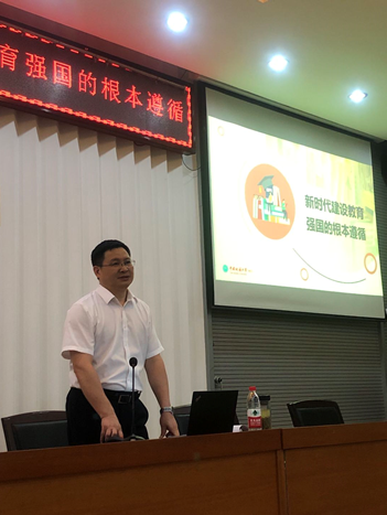 课上,刘杰系统讲述了习近平总书记关于教育重要论述的时代背景、科学内涵和重大意义。他从中华民族伟大复兴战略全局和世界百年未有之大变局两个大局出发,结合学校教育工作实际,从“九个坚持”入手,围绕青年学生的历史使命,深入浅出的讲解了在推进党和国家教育事业发展的伟大实践中,应着眼于培养什么人、怎样培养人、为谁培养人这一根本问题,强调教育是国之大计、党之大计,坚持立德树人根本任务,培养德智体美劳全面发展的社会主义建设者和接班人。