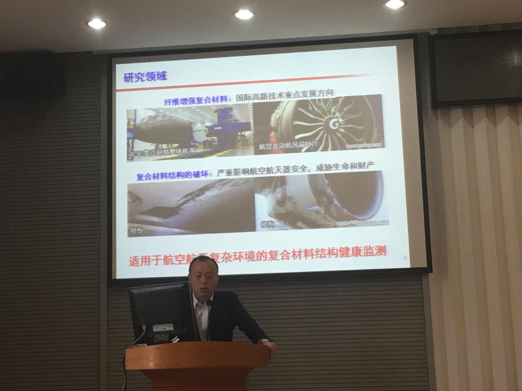 复合材料结构的破坏会严重飞行器安全,因此结构监测是航空航天领域的一个重要研究课题。然而,现有的光纤光栅传感和超声导波传感都难以满足航空航天复合材料结构监测的高要求。报告介绍了课题组针对碳纤维复合材料,在结构成型、微小损伤评价与服役监测等方面进行的一些有益的探索,采用高性能的光纤光栅超声传感技术,表征了复合材料的损伤,实现了对复合材料结构的健康检测。报告后,学院师生与吴教授针对被动和主动超声传感技术进行了交流,就复合材料是否能用红外的方法检测,以及用相移光栅是不是会影响动态范围等问题进行了讨论。最后,吴教授鼓励学生参与到国家的航空航天事业,提升国家核心竞争力。