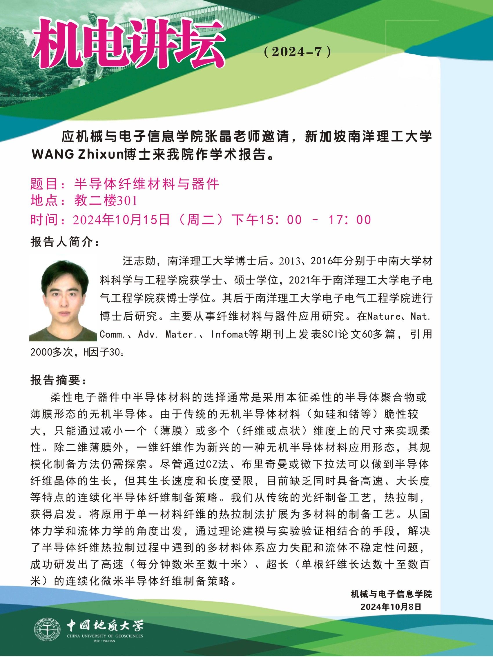 【10月15日】机电讲坛(2024-7):新加坡南洋理工大学WANG Zhixun博士来水果派 作学术报告