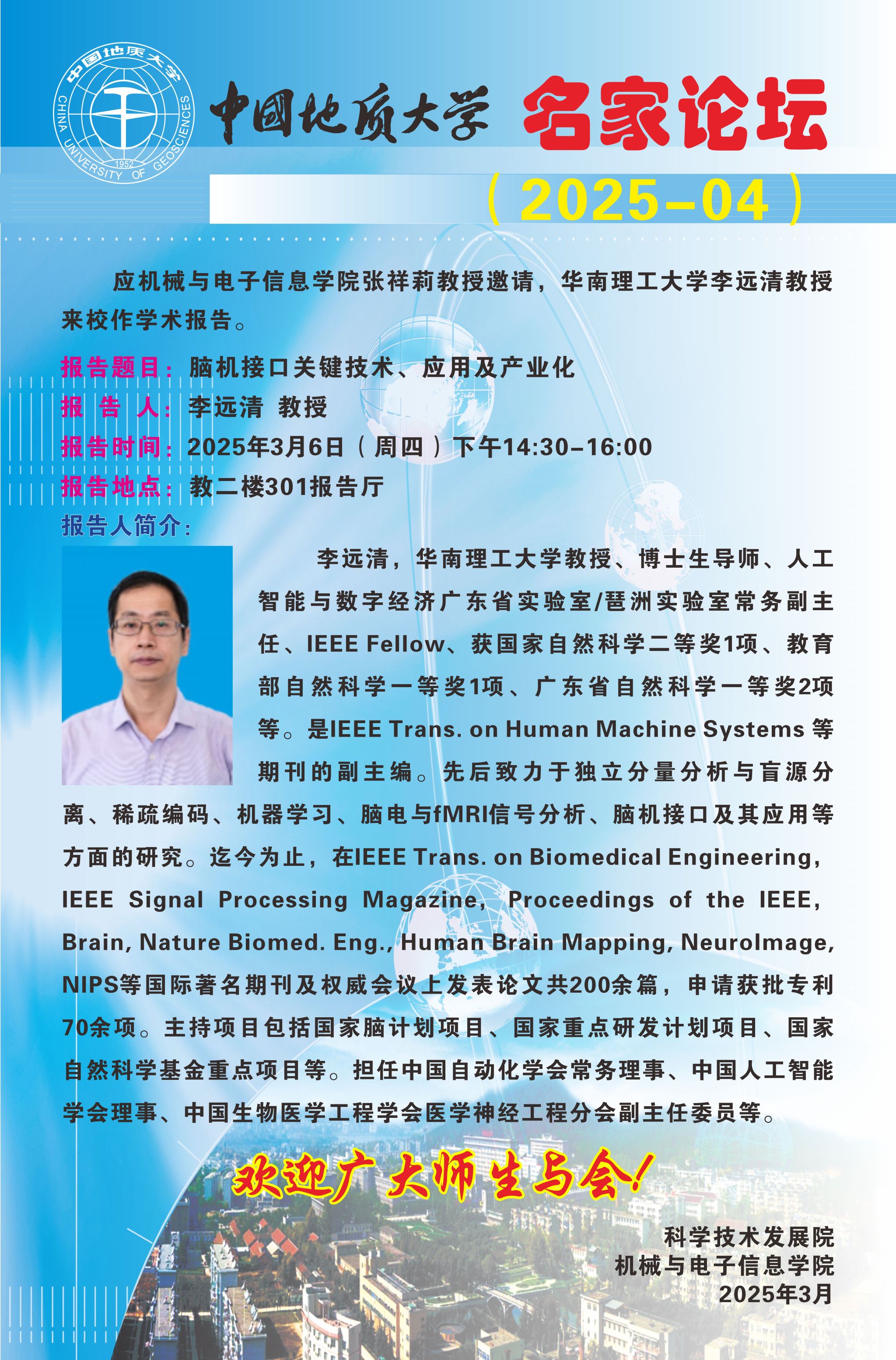 【3月6日】机电讲坛(2025-1):华南理工大学教授李远清来水果派 作学术报告