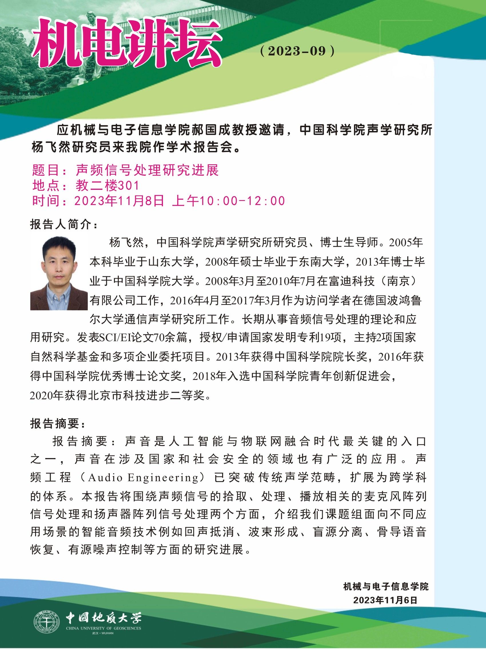 【11月8日】机电讲坛(2023-9):中国科学院声学研究所杨飞然研究员来水果派 作学术报告会