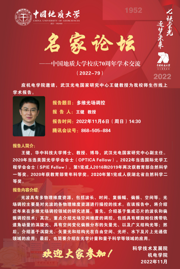【11月6日】校庆系列学术活动---名家论坛(2022-79):华中科技大学王健教授