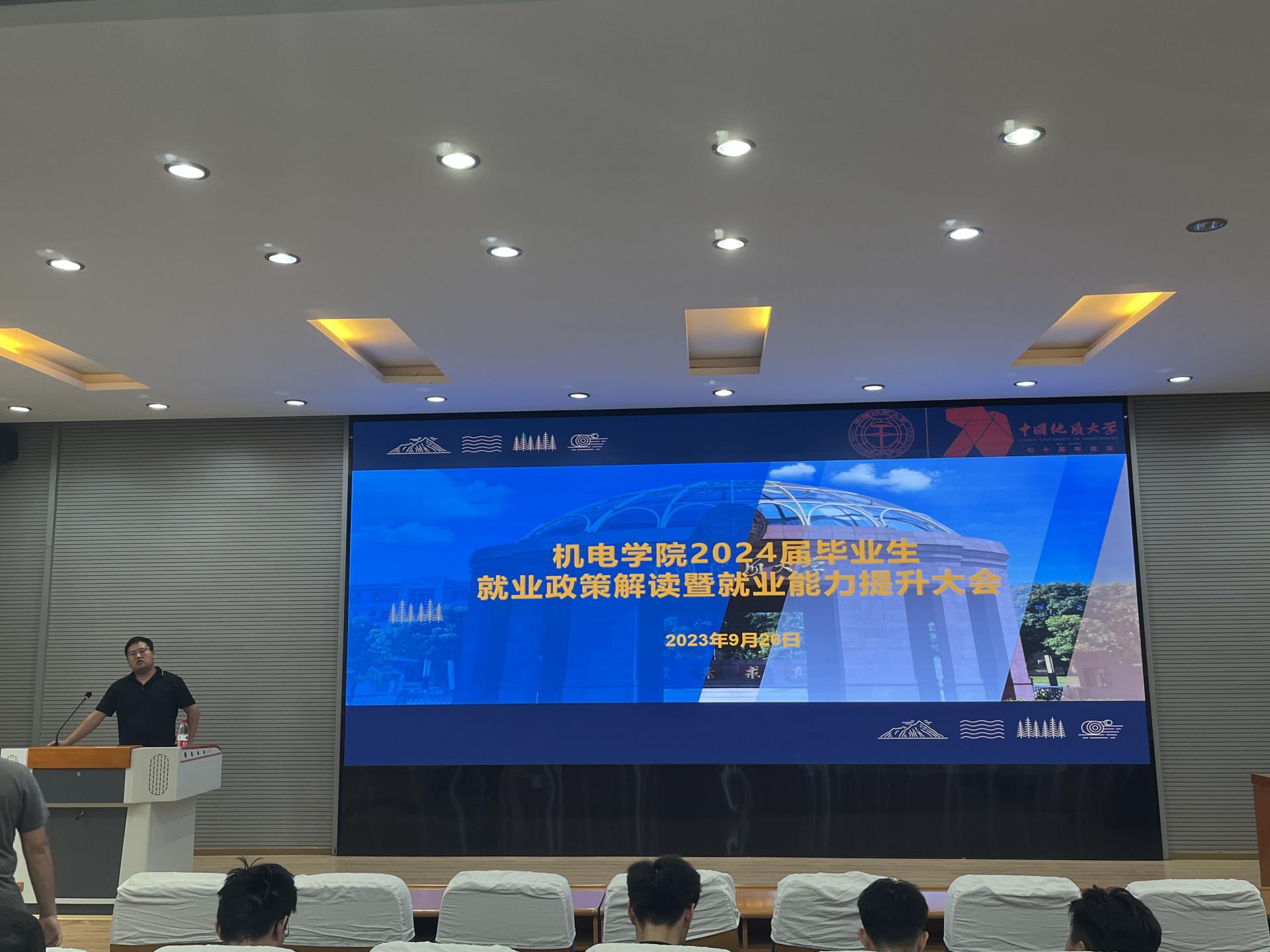 召开2024届毕业生就业政策解读暨就业能力提升大会。辅导员刘彪、罗采薇出席大会并作专题解读报告,2024届本硕毕业生参加大会,研究生德育助理戴书凝主持大会。