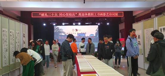 展览以“献礼二十大 同心贺校庆”为主题,精心布置了摄影、书法、绘画、手工4个展区,通过上百幅作品,详细展现离退休教职工爱党爱国、荣校爱校的光荣传统,深切反映离退休教职工“退休不褪色”的积极心态,持续发挥余热助力校园文化建设的真挚情怀。