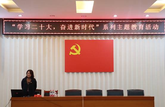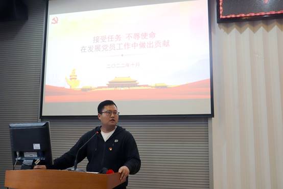 “学习二十大,奋进新时代”第一期主题教育活动在教二楼301举行,学校党委组织部专职组织员杨莉讲授题为《接受任务 不辱使命 在发展党员工作中做出贡献》的专题辅导报告。学院学生党员骨干参加报告会,报告会由辅导员刘彪主持。