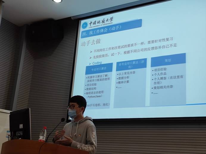 活动现场,校园招聘部讲师团成员围绕简历的制作进行详细讲解,强调简历制作应保证简历的简明性、真实性、针对性、匹配性和严谨性。研究生毕业生代表从简历投递、就业方向、专业技能和面试技巧等方面进行了交流分享。