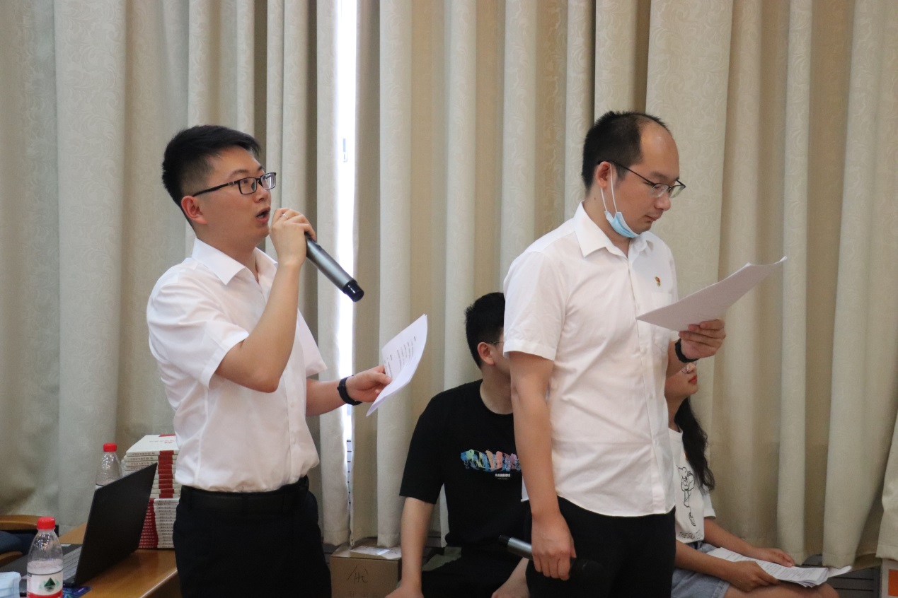 随后,中建三局智能公司叶超同志分享参与火神山项目建设的战斗历程。他讲到,我们要不惜一切代价克服困难,尤其是党员同志们这个时候要充分发挥带头作用,竭尽所能保障建设进度。机械与电子信息专业工设党支部桑明琪同志分享抗疫志愿服务心得。她说,作为一名党员,在大战大考中要发挥先锋模范作用,力所能及的投身到防疫工作中去。