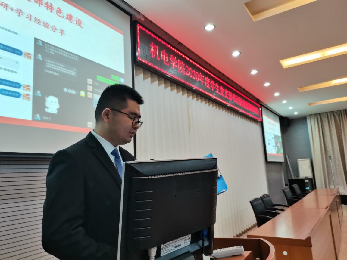 在认真听取各学生党支部汇报交流后,于晓舟作总结讲话。她首先对各位正式党员的热情参与表示高度肯定,并对各支部的工作及汇报情况进行了点评。她指出,2021年是中国共产党百年华诞,是开启全面建设社会主义现代化国家新征程的起步之年,希望同学们牢记党员身份,提高政治理论修养,坚定共产主义信念。她强调,各学生党支部要以党史学习教育活动为契机,把支部自选动作与党史学习结合起来,做出特色与成效,努力做到学史明理、学史增信、学史崇德、学史力行,有力推动党支部建设和同学们成长大局协同融合发展,为服务机电学子成才作出应有贡献。