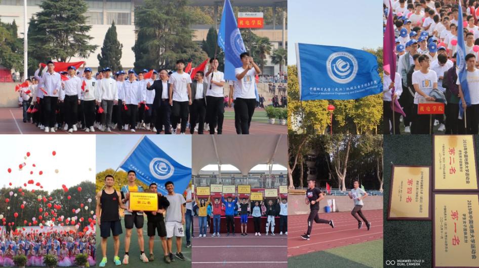 在长跑项目中的连续卫冕。2016级本科生王兴松代表学校参加2019年湖北省大学生运动会,获男子5000米长跑第三名的好成绩。2019年地大杯赛场中,机电女足一路凯歌,将女足冠军收入囊中;机电男篮奋勇拼搏,连续三年拼进决赛,虽最终惜败,却是观众心中当之无愧的无冕之王;机电羽毛球队稳扎稳打,排名逐年上升,最终获得地大杯第三名的好成绩。