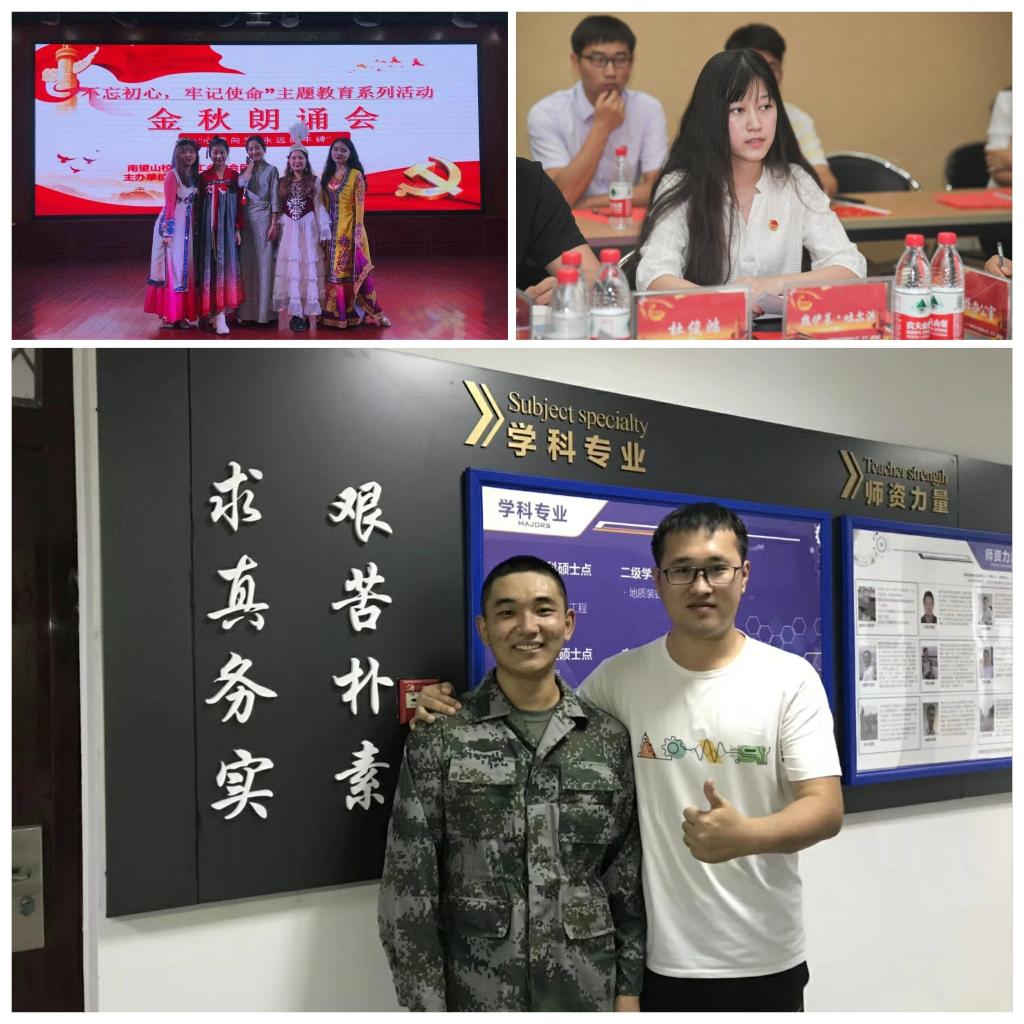 的青年学子们将爱国深情刻入心底,在各自的学习生活中不断展现出机电青年的靓丽风采——2015级本科生刘熠、2017级本科生陈彦伟志愿参军入伍,用汗水在青春画卷上挥洒一抹军绿;2019级本科生朱心禹将爱国爱校汇聚笔尖,用版绘画出祖国变迁献礼70华诞,带领团队用原创手绘日历向2020年的地大问好;2017级本科生热伊莱·吐尔洪参加教育部部长陈宝生来校调研座谈会及学校国庆座谈会,代表学校广大少数民族同学向伟大祖国告白;2019级本科生玛吾叶·加尔恒同学在学校“民族团结一家亲”主题演讲比赛中获得一等奖。