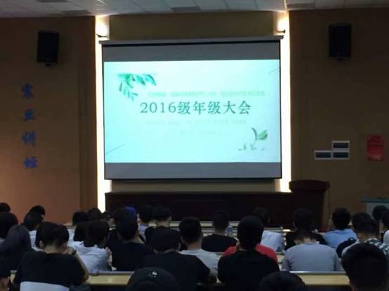 党委副书记齐世学、2016级辅导员罗采薇、兼职辅导员王竞成和2016级全体学生参加会议。