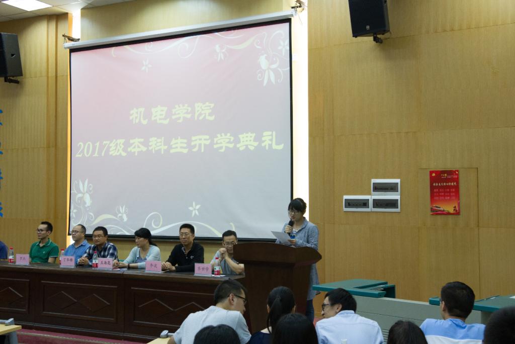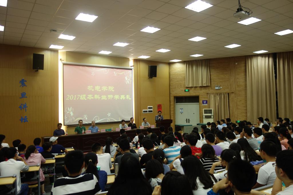2017级本科生开学典礼在教三楼109举行。院党委书记王海花、院长丁华锋、副院长李波、黄田野、罗杰、院党委副书记齐世学、教师代表郝国成出席典礼。