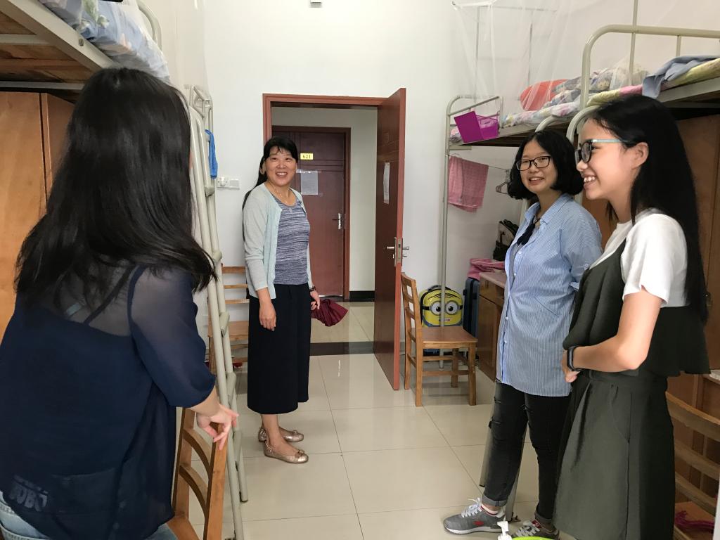 下午3:00,学院党委书记王海花、党委副书记齐世学、副院长罗杰、文国军、李波等老师来到各寝室走访看望2017级新生。在走访过程中,老师们着重提醒新生,时刻保持警惕心理,谨防上当受骗,外出注意交通安全等事项,并且对新生寝室各方面设施条件进行了了解,对新生提出的问题进行了解答,并认真听取了大家的意见和建议。