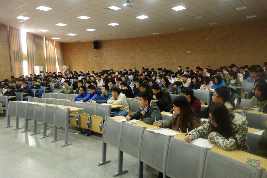 黄梅娇就学业情况、个人发展、文明安全等几个方面发言。她肯定了上学期各个专业所取得的进步,着重表扬了成绩优秀的学生和班级。2014级的学生很快就进入大四,未来发展是大家普遍关心的问题,黄梅娇依次对保研、考研、出国留学、求职就业等发展方向作出讲解和指导,提醒大家应早定目标、早做准备。最后,她提到了电信诈骗、校园贷的危害及预防,呼吁大家重视人身财产的安全;同时也要重视文明宿舍的创建和身心健康发展。