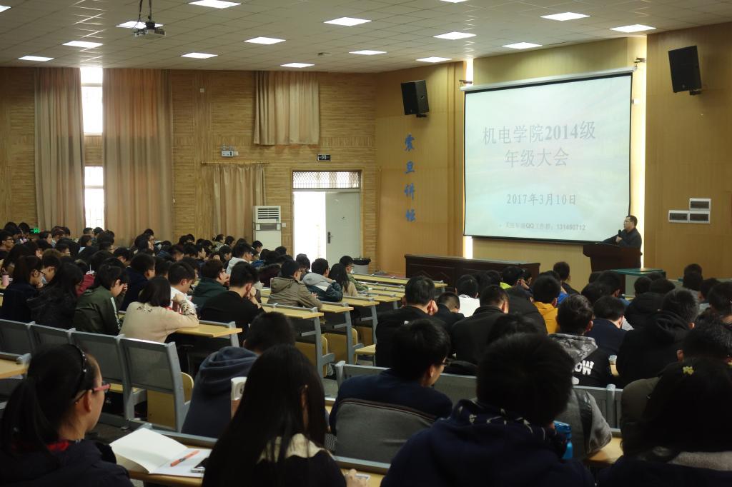 2014级年级大会在教三楼109举行,院党委副书记齐世学老师,院教务科潘利老师,2014级兼职辅导员霍莉霞及2014级全体学生参加会议。