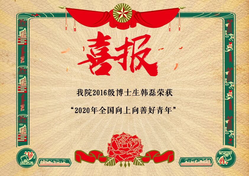 [2020.5]水果派 2016级博士生韩磊 荣获 “全国向上向善好青年”