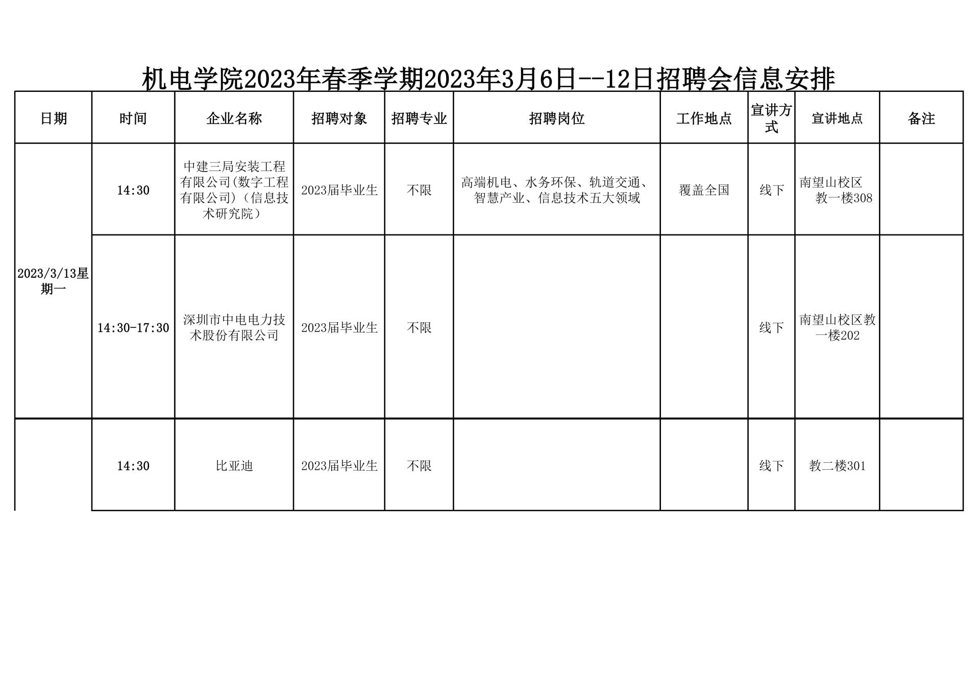 【毕业生·2023年3月13日--18日招聘会信息】水果派 2023年春季学期2023年3月13日--18日招聘会信息安排