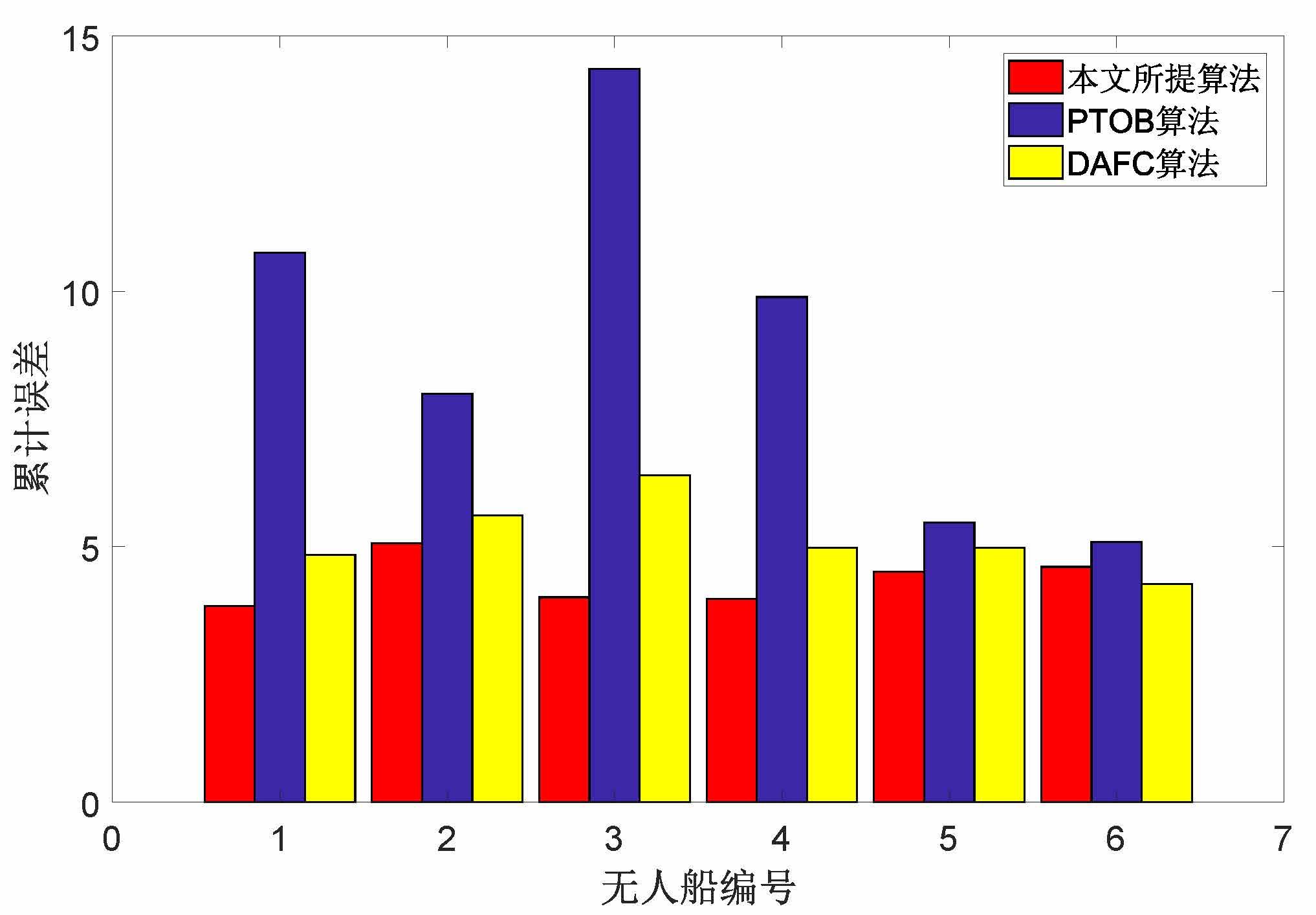 为定量评估所提出算法相较于PTOB算法和DAFC算法的性能优势,我们引入最优协同误差作为评价指标。仿真结果表明,所提算法的稳态误差最小,并且误差收敛极小值时所用的调整时间也最短。此外,所提算法所产生的累积误差也明显小于PTOB算法和DAFC算法。综上所述,无论是在收敛速度、稳态精度还是整体协同性能方面,所提出的算法都展现了相对于PTOB和DAFC算法的显著优越性。本研究不仅解决了HiTL机制与预设时间控制在非线性海洋系统中的深度融合难题,更首次在存在通信链路动态故障的严苛条件下实现了人机协同的快速、稳定编队重构,为未来海上应急救援、动态围捕等需人机联合决策的高风险任务提供了可靠的技术范式。