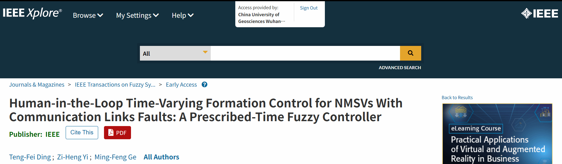 葛明峰教授团队(丁腾飞、易子恒、葛明峰)在模糊系统领域权威期刊《IEEE Transactions on Fuzzy System》(IF=11.9)发表研究成果。该文提出了一种新型的基于分层控制框架的预定时间模糊控制算法,解决了具有通信链路故障和模型不确定性的多无人船系统的时变编队控制问题。